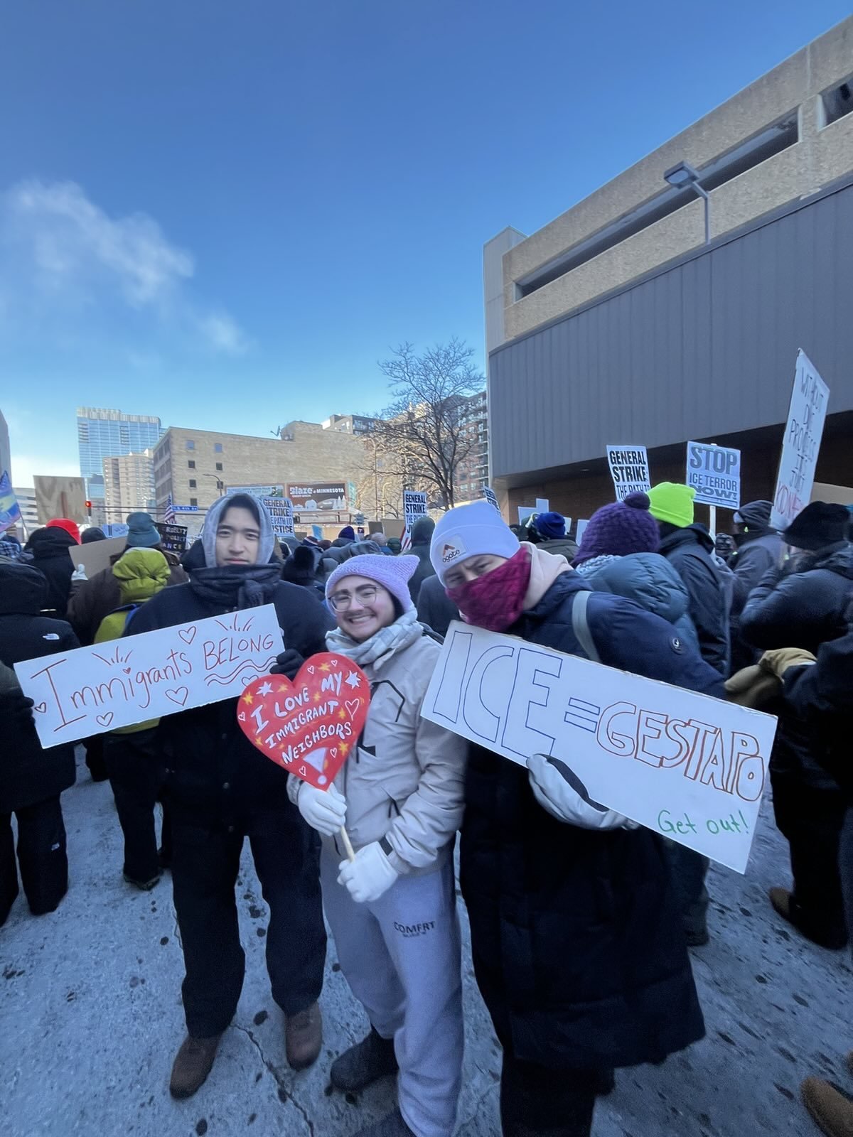 We know that our fight is bigger than the boundaries of our state. We know the world is watching. We know that we are fighting for the rights of all Americans. As Rep. Becca Balint of Vermont said during a hearing held in Minnesota about the federal raids: You are the center of America's heartbreak "but you are also the center of America's courage. Minnesotans are doing it for all of us." Bostonians marched in 7-degree weather this past week, chanting: "We're not cold, we're not afraid. MN taught us to be brave."